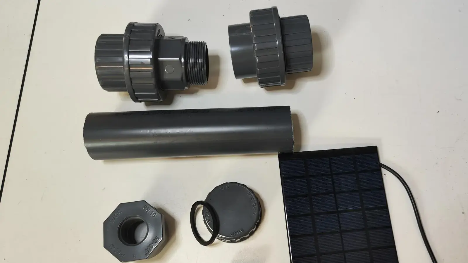 Für das "obere" Ende haben wir eine Klebemuffe mit Außengewinde gewählt, die dann mit einer Schraubkappe verschlossen werden kann. In die Klebemuffe bohren wir ein 11mm Loch und schneiden mit einem Gewindeschneider ein 12x1,5mm Gewinde hinein. Hier wird später das Kabel für das Solarpanel durchgeführt. Damit das Ganze dicht bleibt, verwenden wir eine Kabeldurchführung.