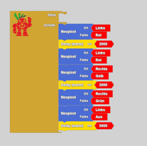 Die LEDs können an und ausgeschaltet werden und so schon kleine Blinkabfolgen, Morsecode blinken und Mini-Ampelschaltungen realisieren. Wir nutzen diese immer wieder, um - je nach betrachtetem Messwert - in einem Ampelsystem anzuzeigen, ob sich Messwerte in gewünschten Bereichen befinden.