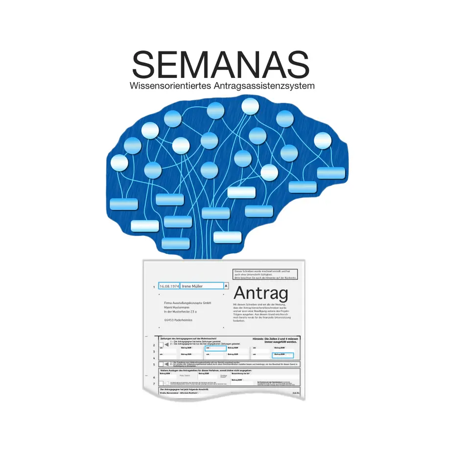 Mit SEMANAS wird ein semantisch unterstütztendes Antragsassistenzsystem entwickelt, dass in den Wochen der Antragserstellung alle Informationen sammelt, verwaltet und zielgerichtet den Beteiligten in einer webbasierten Oberfläche zur Verfügung stellt. Eine wesentliche Rolle spielen dabei Dokumente, welche zu einem Antrag eingereicht oder während der Antragsstellung erzeugt werden müssen. SEMANAS soll selbständig die für einen Antrag geeigneten Informationen aus bestehenden Dokumenten auslesen und in einer zentralen Wissensdatenbank verwalten. Sobald alle für einen Antragsschritt notwendigen Informationen vorhanden sind wird selbstständig der entsprechende Spezialist (bspw. ein Gutachter) informiert, die gesammelten Informationen werden zur Verfügung gestellt und der gesamte Antragsprozess wird wesentlich vereinfacht und gleichzeitig beschleunigt. Möglich wird dies durch die Verschmelzung von antragsrelevantem Wissen mit den zum Antrag notwendigen Arbeitsschritten.