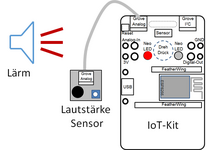 AnalogRead wandelt die physikalische Größe Spannung in einen Zahlenwert um. Schließen wir an der Grove-Buche A0 (linke weiße Buchse) z.B. einen Loudness-Sensor an, so können wir so die Lautsärke im Klassenzímmer messen.