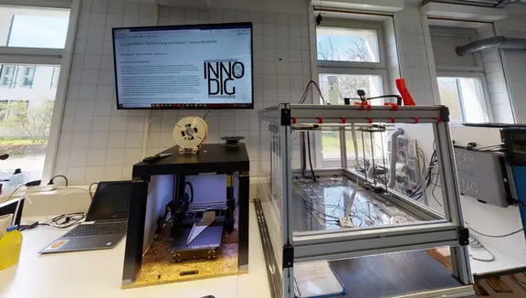 Das Innovationslabor Digitalisierung INNODIG ist ein von der Carl-Zeiss-Stiftung geförderter Makerspace. In Zusammenarbeit der Fachrichtungen Informatik, Maschinenbau und Verfahrenstechnik können im interdisziplinären Kontext Projekte umgesetzt werden.