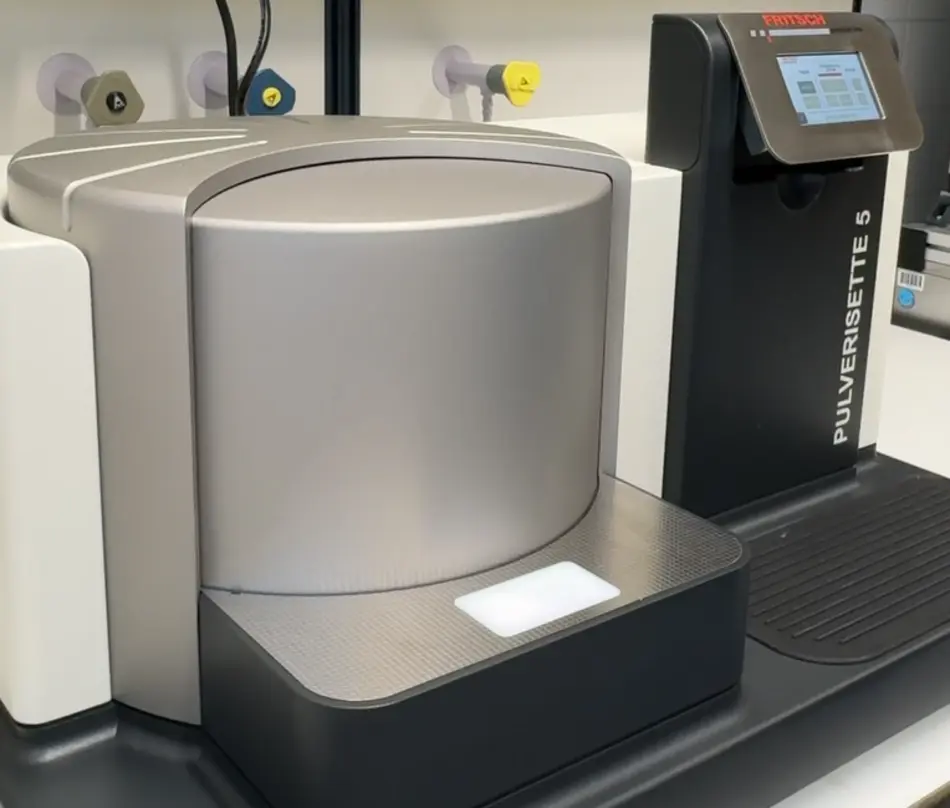 Die Planetenkugelmühle der Firma FRITSCH Milling and Sizing bereichert uns im Bereich feinster Zerkleinerung. Diese Geräte werden vor allem verwendet, um Material für einen weiteren Analyseschritt zu zerkleinern. Innert kürzester Zeit werden hiermit Partikelgrößen im Mikrometerbereich erreicht.