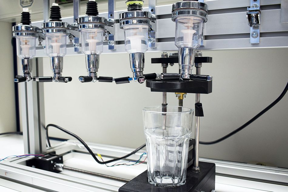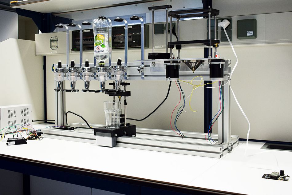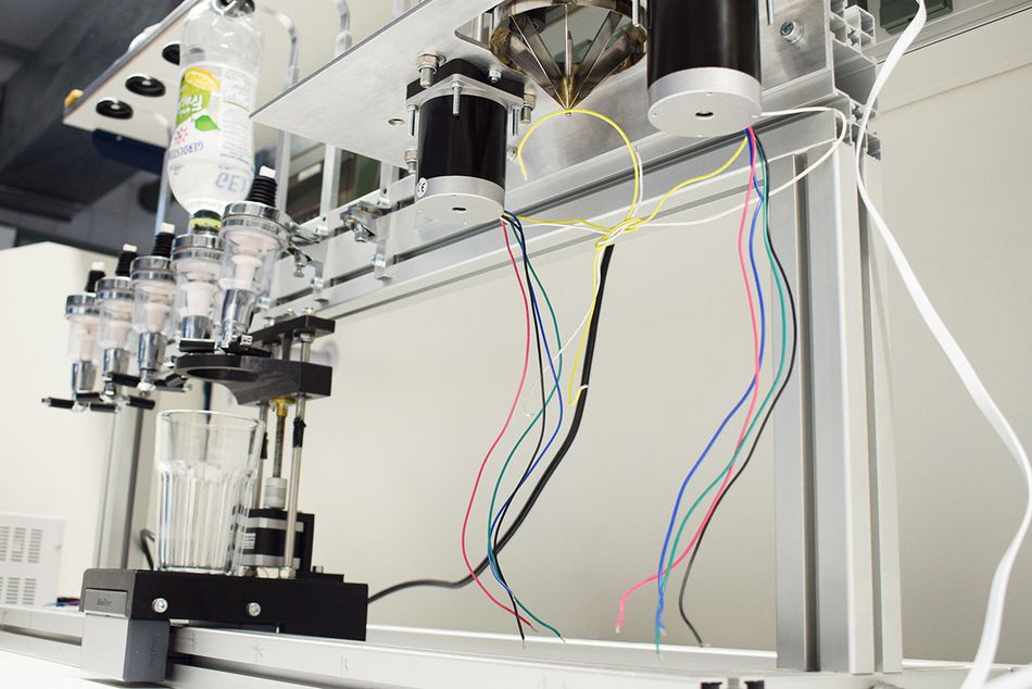 Im Zuge einer interdisziplinären Zusammenarbeit zwischen Informatik und Maschinenbau konstruierten Daniel Sonntag und Sebastian Kiechle eine sprachgesteuerte Cocktailmaschine.