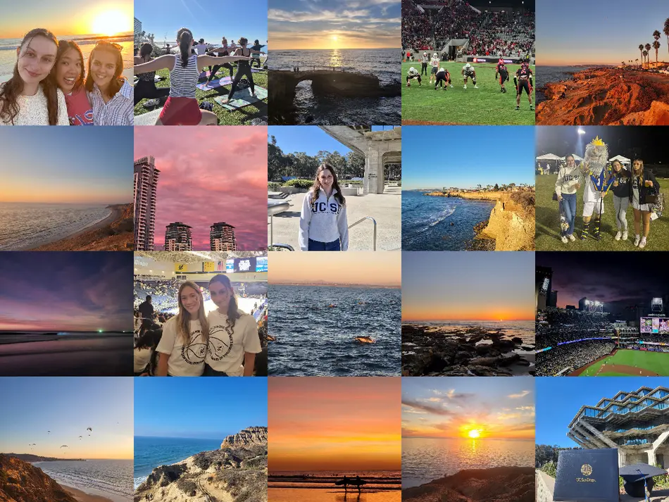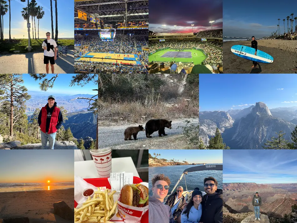 Abends sind vor allem bei Studierenden das Gaslamp Quarter oder eine der vielen Bars in Pacific Beach, Ocean Beach, Hillcrest und Northpark beliebt. Kulinarisch findet man in San Diego vor allem mexikanisches Essen wie zum Beispiel Tacos [Taco Tuesday), aber auch zahlreiche Burger-, BBQ-, Sushi- und alle möglichen internationalen Restaurants. Wer sich kulturell interessiert, kann im Balboa Park viele Museen, wie zum Beispiel das Museum of Art oder das Aerospace Museum, besuchen. Eine attraktive Abwechslung bieten auch der San Diego Zoo, der Wild Animal Park und Sea World. Richtung Inland ist man schnell in den Bergen, bis Los Angeles sind es mit dem Auto lediglich etwa zwei Stunden, zahlreiche Nationalparks, der Grand Canyon, Las Vegas, San Francisco sind sehr gut zu erreichen, und Mexiko ist nur etwa 20 Autominuten entfernt.
