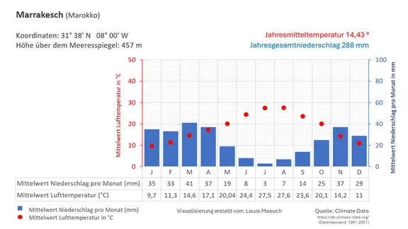 Ein Klimadiagramm ist eine grafische Darstellungsform der klimatischen Verhältnisse an einem bestimmten Ort im Jahresverlauf.