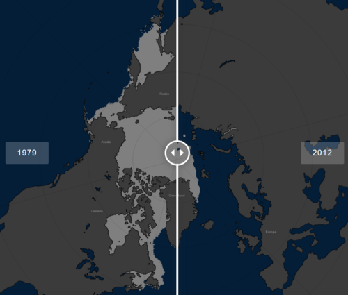 Bei dieser Infografik handelt es sich um eine Raum-Zeit-Visualisierung. Die Verschiebung der Baumgrenze in Abhängigkeit von durch den Klimawandel verursachten Temperaturänderungen wird hier auf sehr vereinfachte aber dennoch anschauliche Weise dargestellt. Zusätzliche Textboxen wurden eingefügt, um den Sachverhalt weiter zu erläutern.
