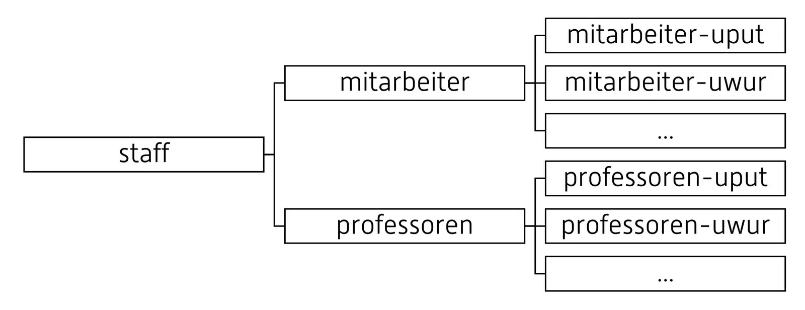 Folgende Gruppen unterscheiden sich in den Berechtigungen zum adressieren der E-Mail Verteiler: