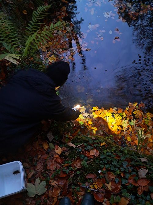 Da der einheimische Steinkrebs (Austropotambius torrentium) sowohl europaweit als auch lokal vom Aussterben bedroht ist, besteht nun seit zehn Jahren ein Projekt im Koblenzer Stadtwald zur Vermehrung des Steinkrebses für den Artenschutz. Seit diesem Jahr begleitet nun auch unsere Arbeitsgruppe dieses Projekt wissenschaftlich. Nachdem Anfang Herbst der Verpaarungsteich gereinigt und mit Wasser befüllt wurde, haben sich unsere Kolleginnen auf die Suche nach geeigneten Elterntieren im Spendergewässer gemacht. Diese Suche erfolgte an mehreren Tagen und begann beim Einsetzen der Dämmerung. Nachdem erfolgreich Männchen und Weibchen in einem Verhältnis von 1:2 gesammelt wurden, wurden diese zur Verpaarung in den Verpaarungsteich eingesetzt. Nun liegt es an den Tieren sich über den Winter erfolgreich zu verpaaren! Im Frühjahr werden die Steinkrebse dann wieder aus dem Teich entnommen und zurück in das Spendergewässer gesetzt. Zuvor werden jedoch die befruchteten Eier von den Weibchen abgestreift, damit diese unter kontrollierten Bedingungen ausgebrütet werden können. Aber hierzu mehr im nächsten Jahr!