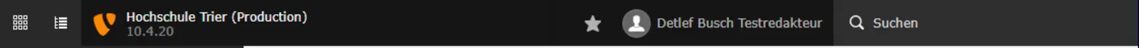 Über allen Bereichen befindet sich die Kopfzeile von Typo3. Hier können die Werkzeugleiste verkleinert, der Seiten- oder Verzeichnisbaum eingeblendet oder versteckt werden. Sowie im Backend gesucht werden. Weiterhin könne Benutzereinstellungen geändert werden oder auf die Favoriten zugegriffen werden.