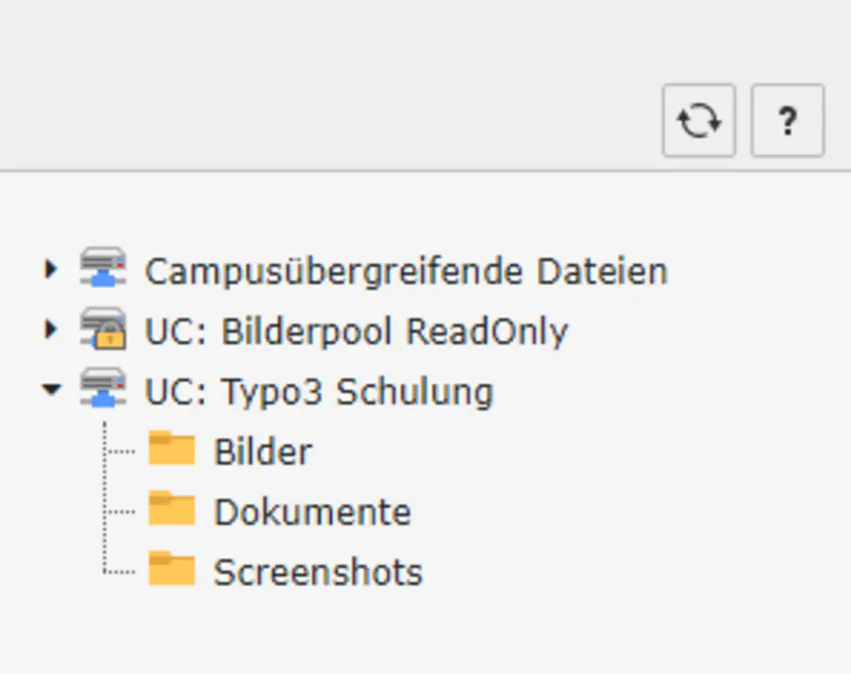 Datei - Dateiliste: Explorer-ähnliche Darstellung der Dateien (Bilder, Dokumente, etc.), die in der Webseite eingebettet oder verlinkt werden. Die Datein müssen wor der Verwendung auf den Server hochgeladen werden.