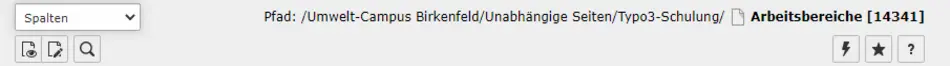 Rechts findet sich der Seitenpfad mit der Seiten-ID und darunter die Hilfefunktion und den Schalter um die Seite in die Favoritenliste zu übernehmen.