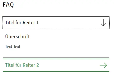 Hier ein Beispiel für ein FAQ, das erste Element ist bereits aufgeklappt, das zweite noch geschlossen.