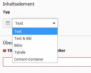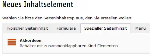 Hierzu muss zunächst ein neues spezielles Inhaltselement des Typs Akkordeon eingefügt werden.
