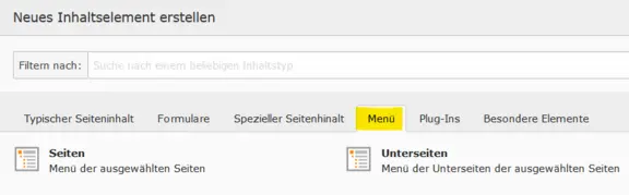 Sollen alle Unterseiten einer oder mehreren bestimmten Seite(n) im Menü sein, das Icon "Unterseiten" auswählen. Neu erstellte Unterseiten tauchen automatisch im Menü auf.
