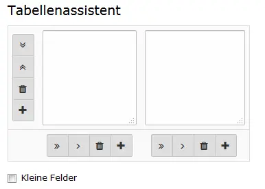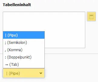 Es existieren zwei Möglichkeiten die Daten in die Tabelle einzugeben: Über eine einfache Texteingabe mit wählbaren Trennzeichen zwischen den Spalten. Hier können z.B. direkt Inhalte von CSV-Dateien eingefügt werden.