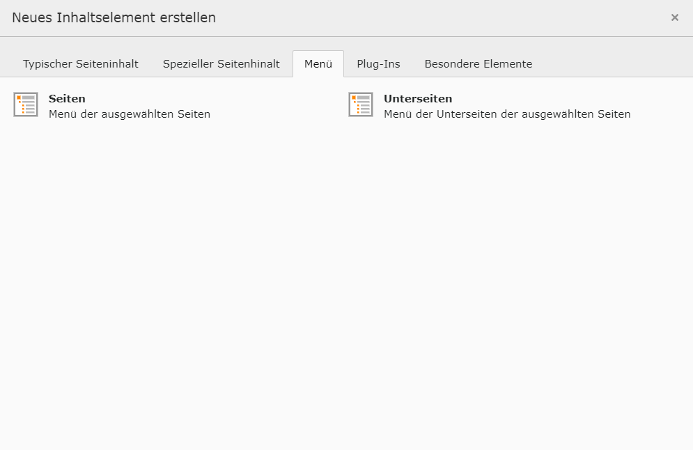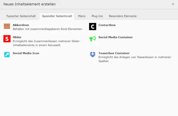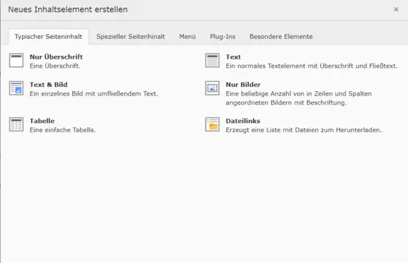Inhaltselement hinzufügen